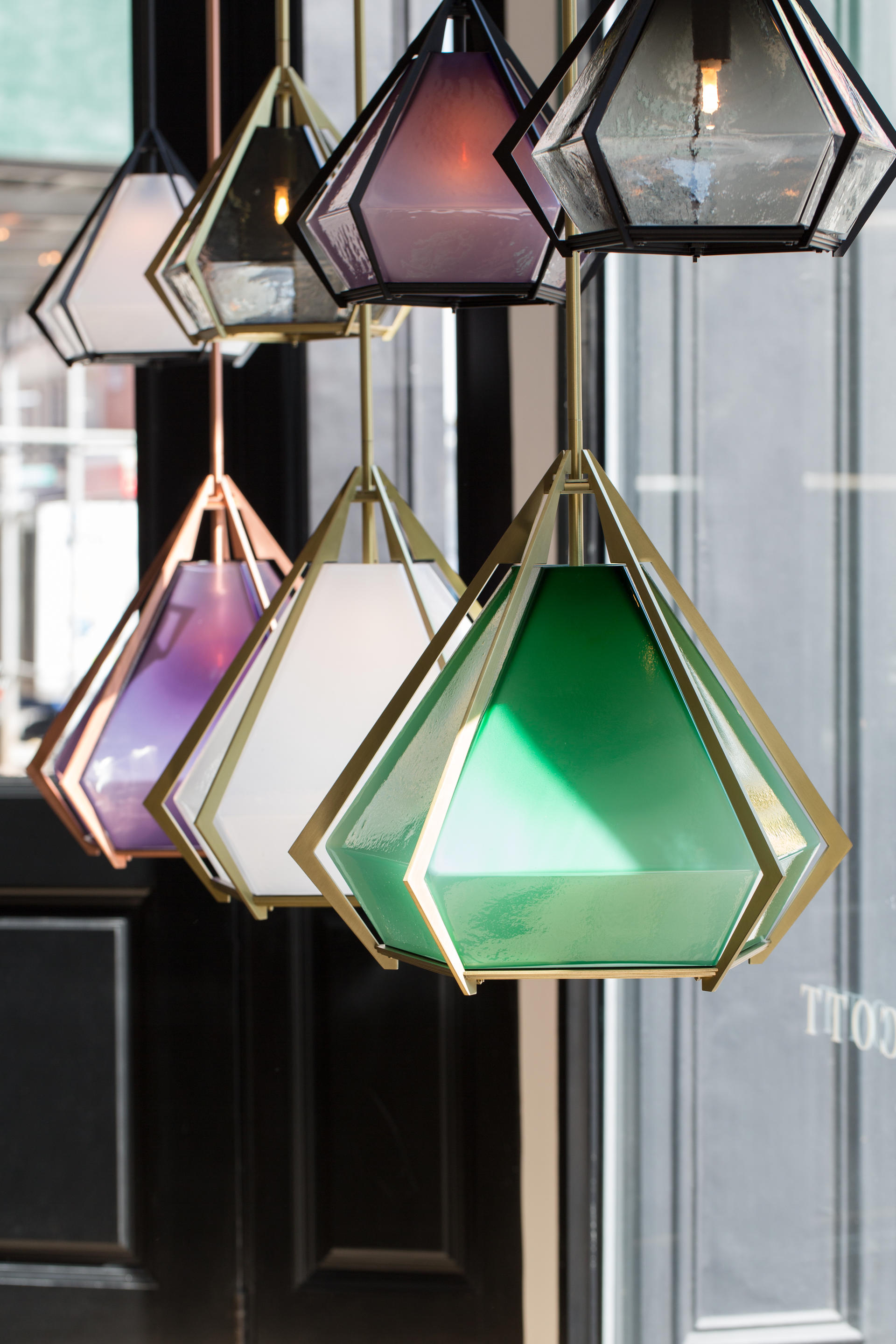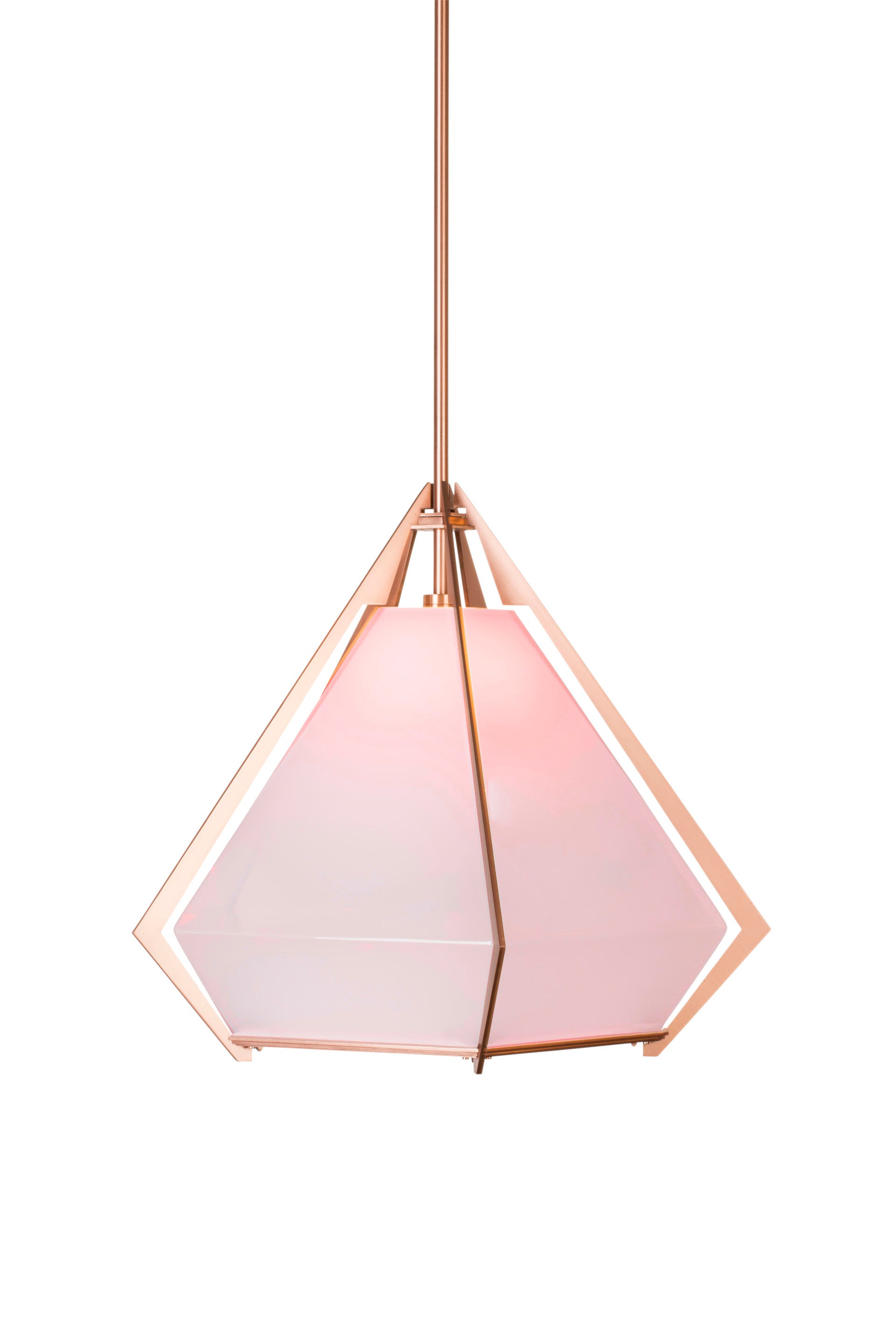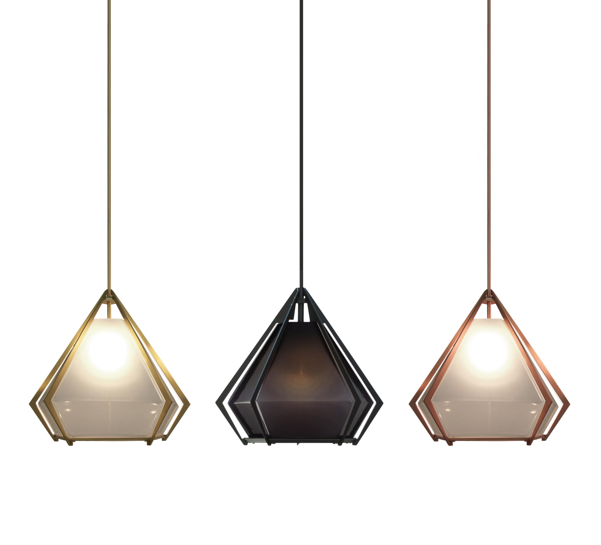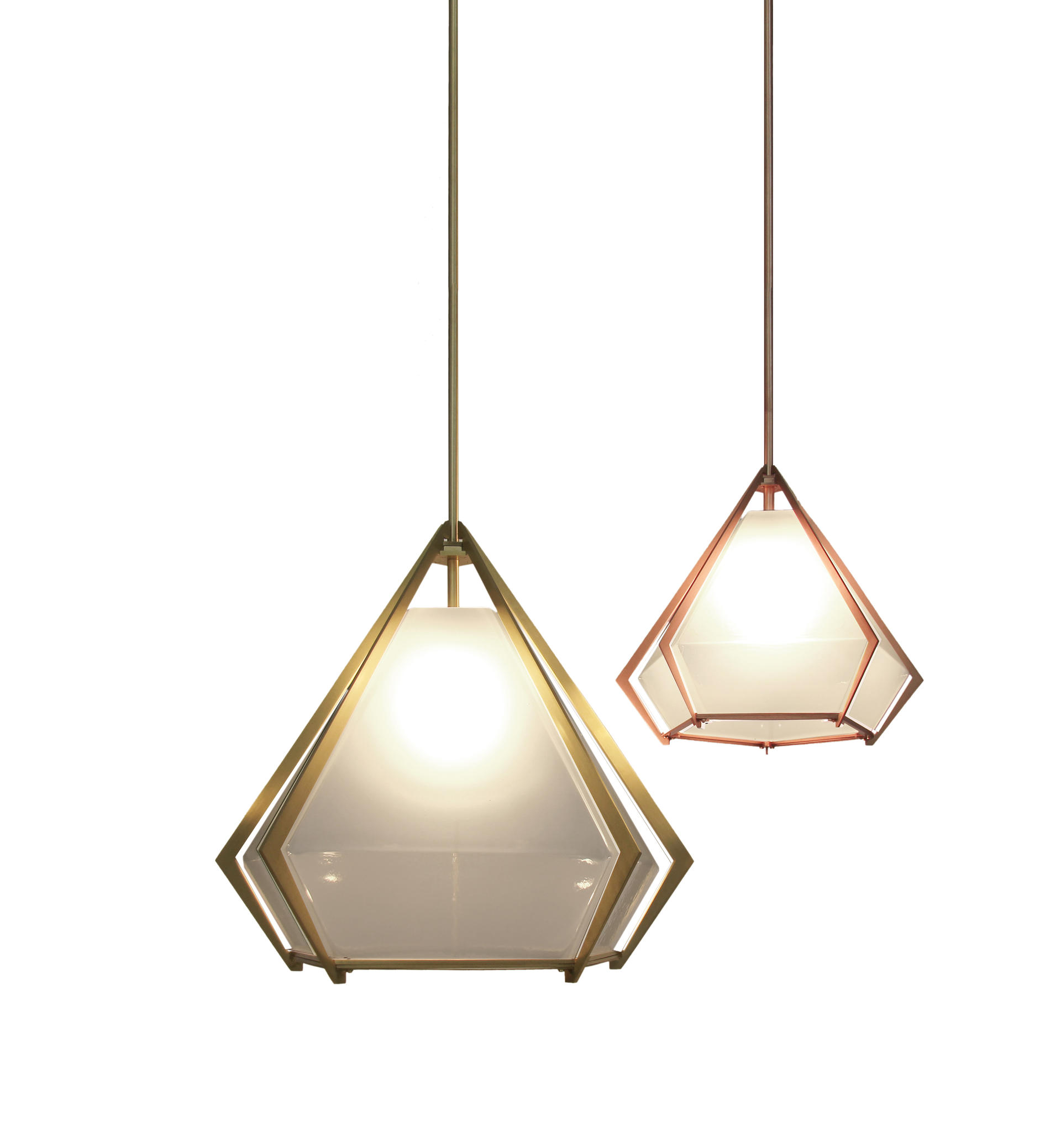 반짝이는 프리즘인 HARLOW PENDENT 는 공간에 화려함을 더하는 반 투명 유리를 담은 금속 프레임으로 쥬얼리 디자인에서 직접적인 영감을 받았습니다.